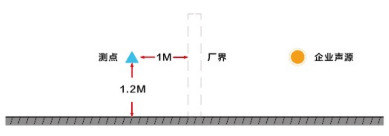 ① 一般情況下,測點選在工業企業廠界外 1m、高度 1.2m 以上、距任一反射面距離不小于 1m 的位置。